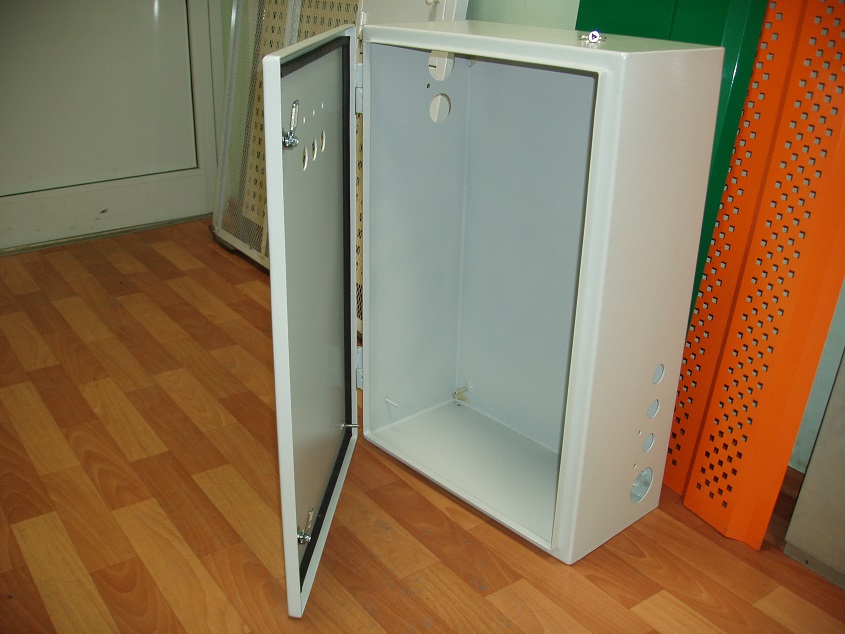 Корпус изготовлен из стали толщиной 2,5 мм. с монтажной панелью из стали толщиной 2 мм. Корпус выполнен герметично и покрыт поршковой краской. Дверь корпуса имеет резиновое уплотнение и два замка под спец. ключ.